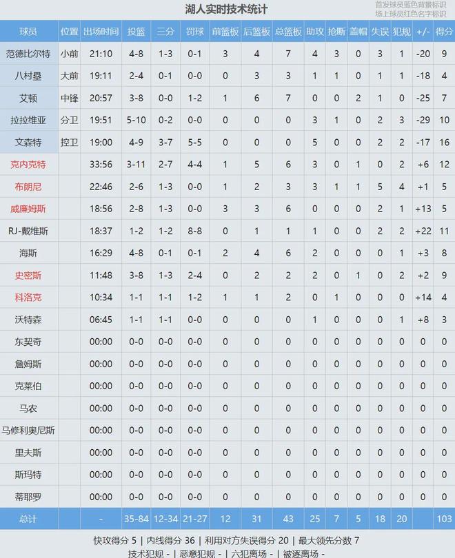 艾顿进攻端有点黄油手,不过面对勇士五小阵容时,艾顿在防守端展现了威慑力,多次干扰追梦和巴特勒的上篮。科尔同时换上霍福德和波斯特,增加内线高度。上一场10中2的克内克特,今天上半场手感回暖,湖人长时间保持微弱的领先。